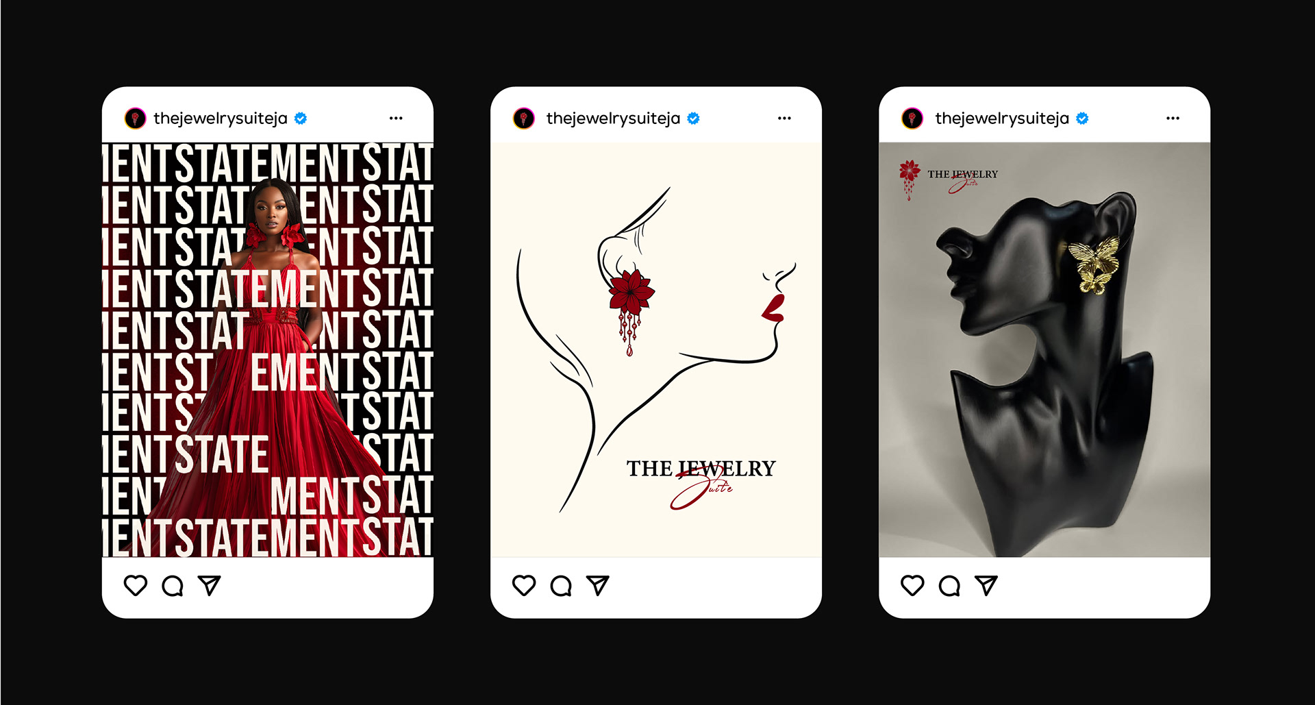 The Jewelry Suite is a statement jewelry brand created to bring bold, expressive accessories to women seeking elegance without the high-end price barrier. The project involved developing a complete brand identity that balances luxury aesthetics with accessibility, allowing the brand to feel refined yet welcoming to a wide audience.